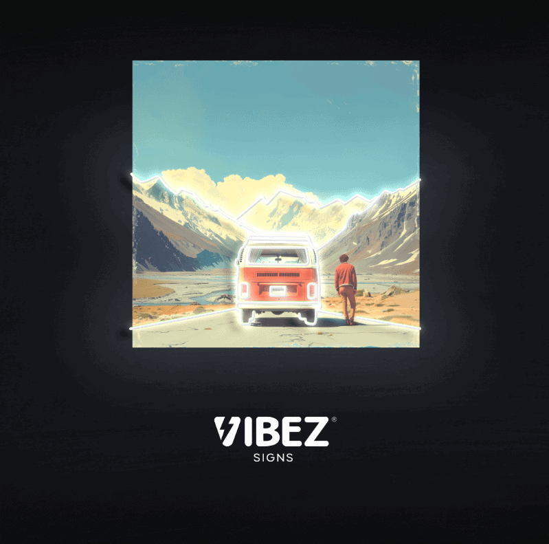 שלט ניאון יוצא דופן המשלב בין אומנות נוף ייחודית לנגיעות אור זוהרות. קומפוזיציה קסומה של ואן קלאסי על רקע הרים, עשויה בקווים בהירים ונקיים המעניקים תחושת חופש, הרפתקה וחלום מתמשך. מושלם לעיצוב קירות מיוחדים בבתים, משרדים, קליניקות, סטודיואים ליוגה או כל חלל שמבקש השראה.