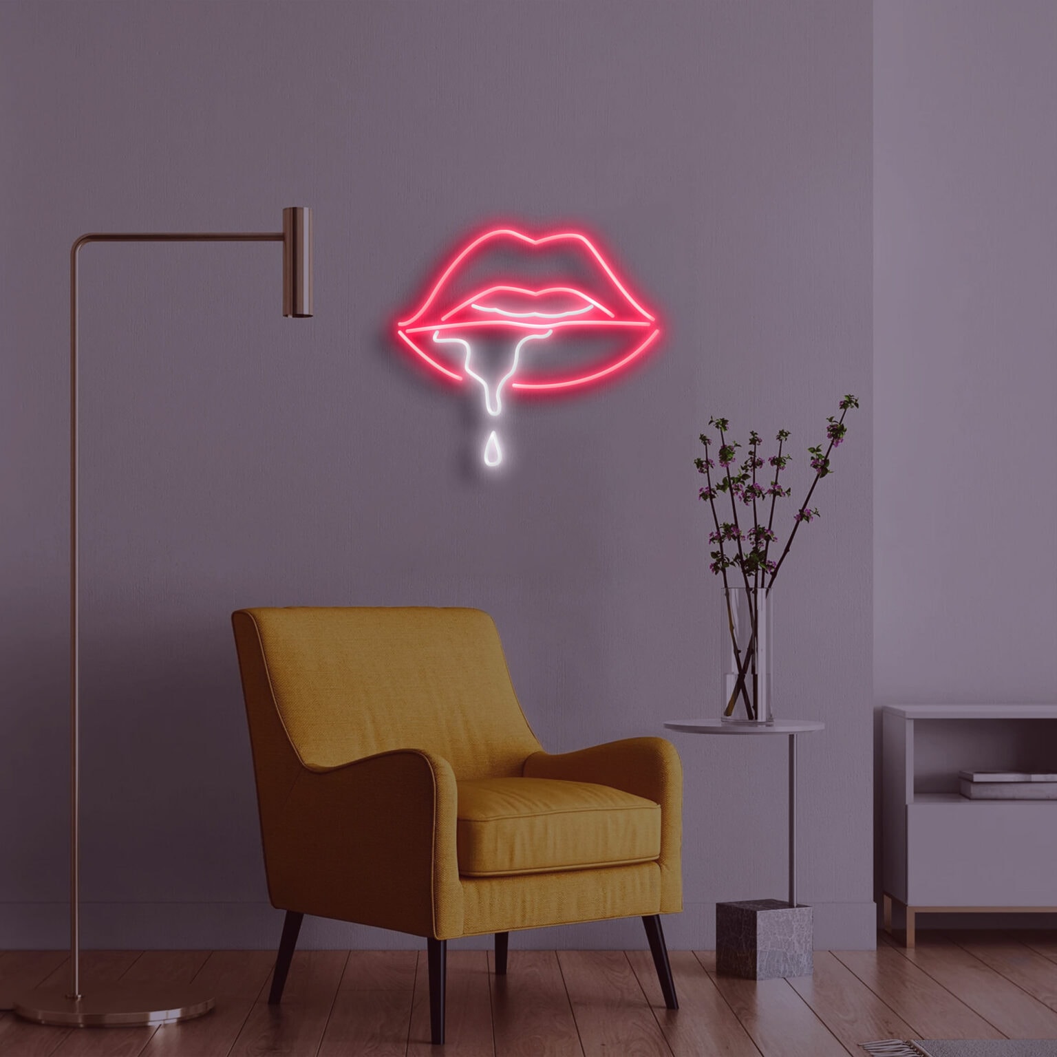 - שלט הניאון "שפתיים זולגות" במידות 45X41 ס"מ