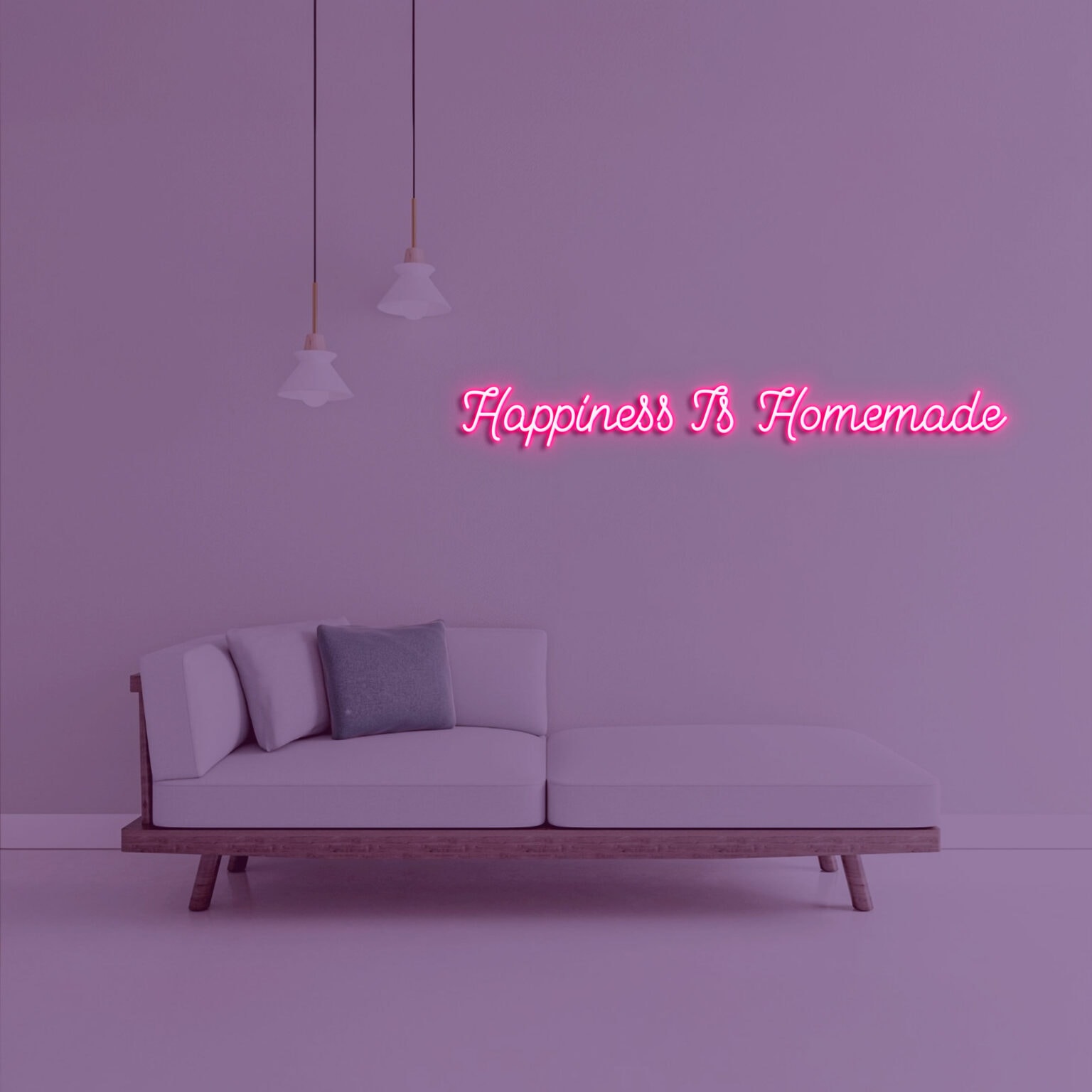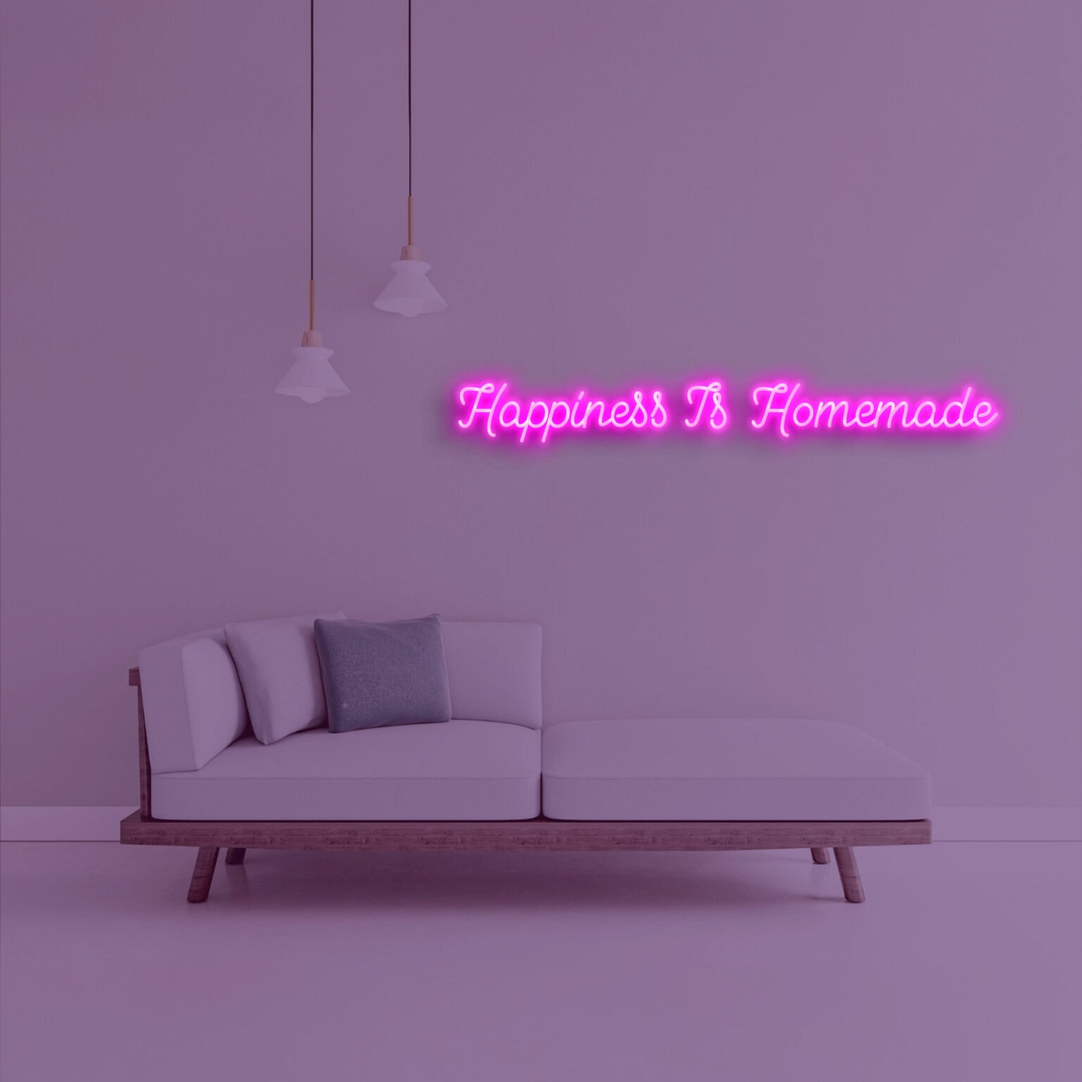 - שלט הניאון "Happiness Is Homemade" במידות 100X11 ס"מ