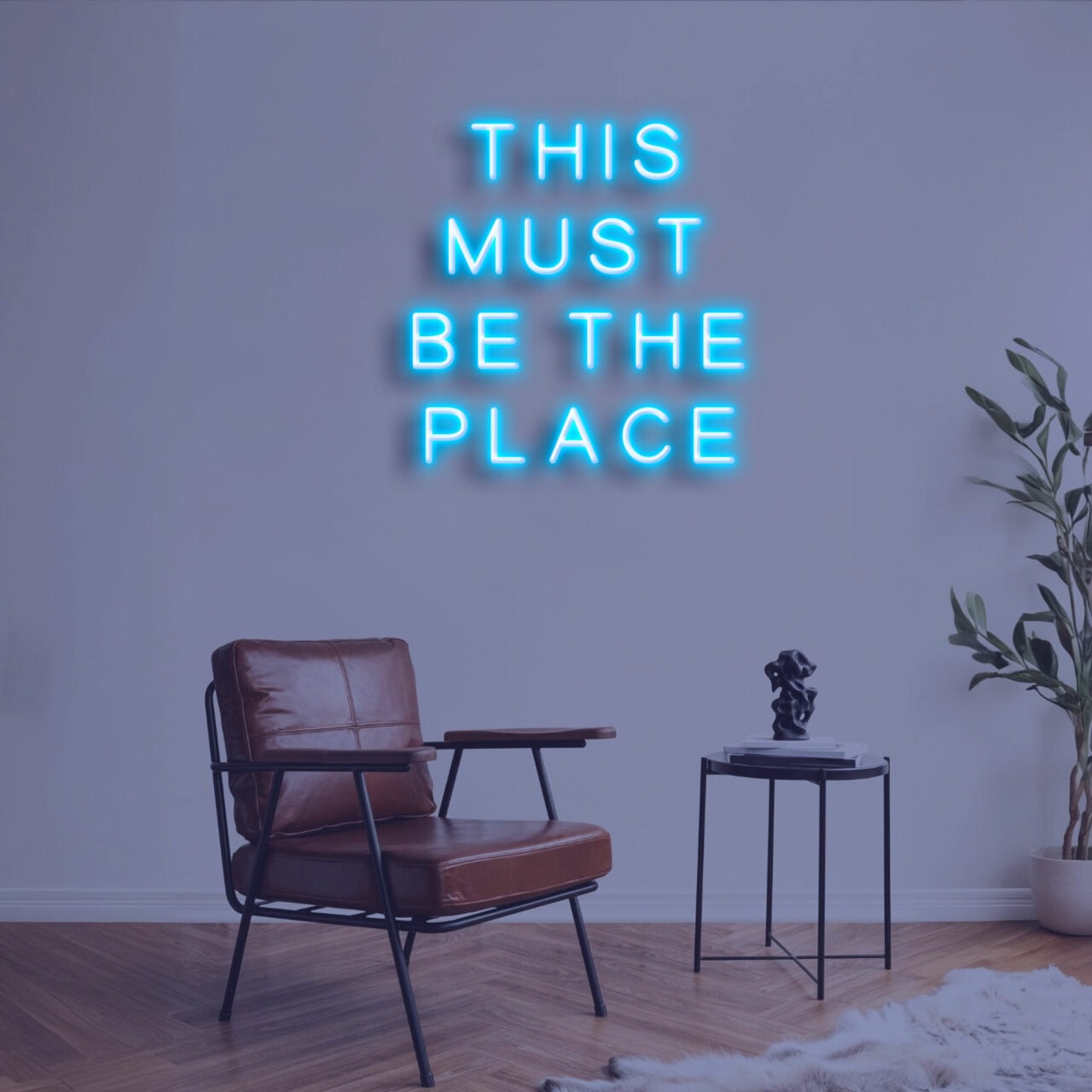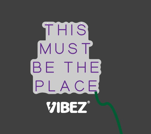 • שלט הניאון "This Must Be The Place" במידות 32X45 ס״מ המיוצר על גבי לוח אקרילי שקוף בחיתוך צורני